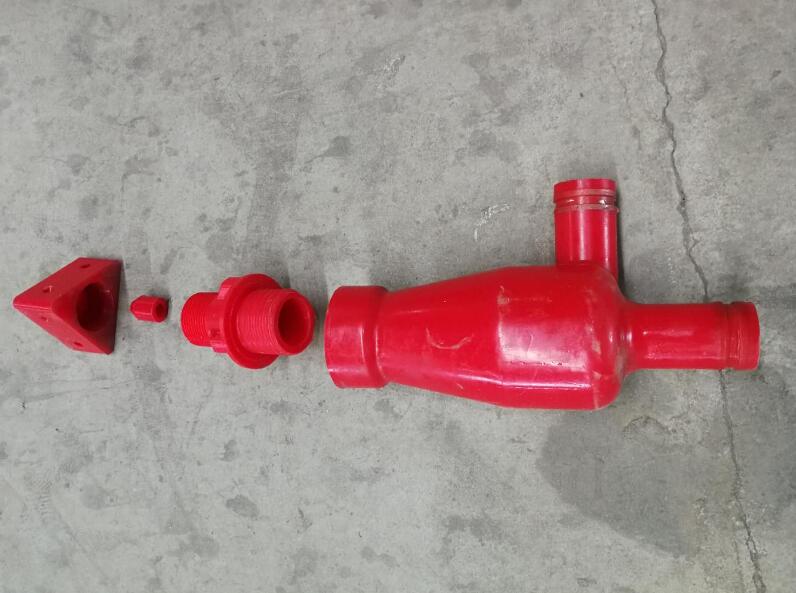 旋流器是一個帶有圓柱的錐形容器,椎體上部分叫液腔,液腔外側有一進液管,進液管以圓錐進液方向和液腔聯通。旋流器的頂端是上溢流口,底部是底流口,也叫排料口;旋流器內部有一個空心的圓管沿旋流器軸線從頂部延伸至液腔里,這個圓管叫溢流管,也叫旋流定向器,其內部形成上溢流通道以便泥漿向上溢流排除;旋流器的尺寸由椎體的最大內徑決定。